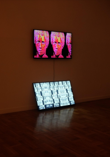 maximiliano, GHOSTS & VENUS (installation view), 2018. Two-channel visual poem. Installation view: Littman Gallery, Portland State University, October 4–28, 2018. Photography by Kalaija Mallery.
